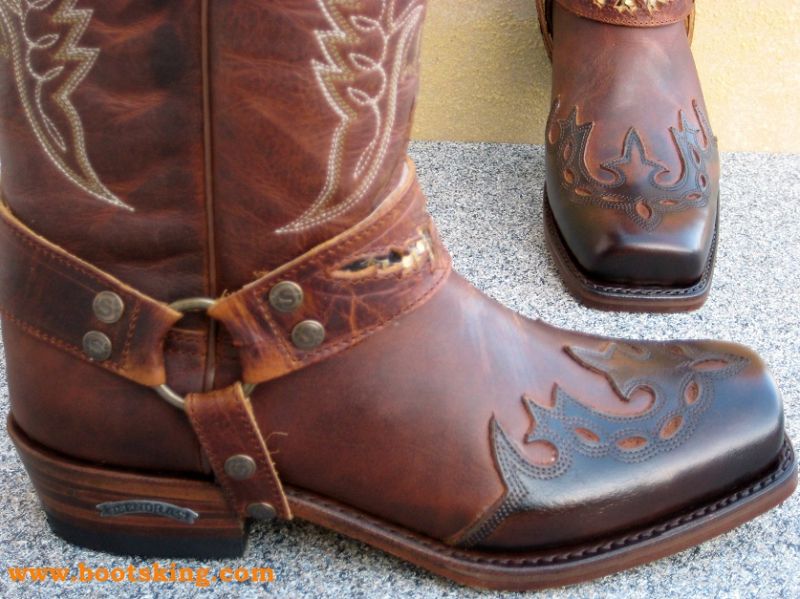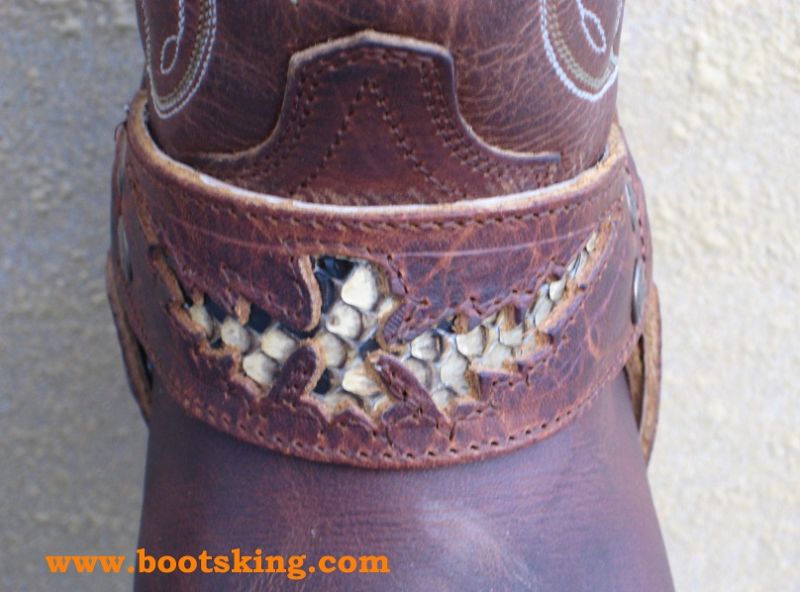 Hochwertig verarbeitete Rahmengenähte (Good Years Welted) Biker Boot aus bestem braunem Oberleder, versehen mit Applikationen aus dunkelbraunem Rinderleder sowie einem Python Leder, aufgebaut ist dieser Stiefel auf einer Ledersohle,  in Spanien von Handarbeit Hergestellt bei Sendra