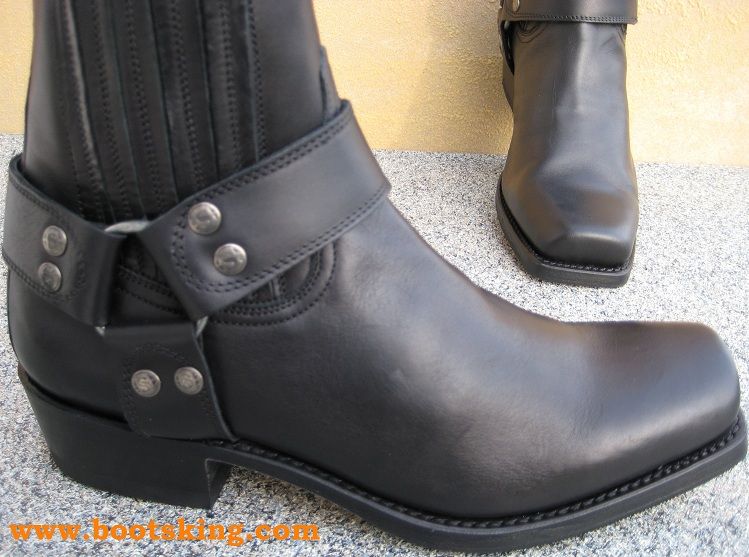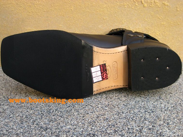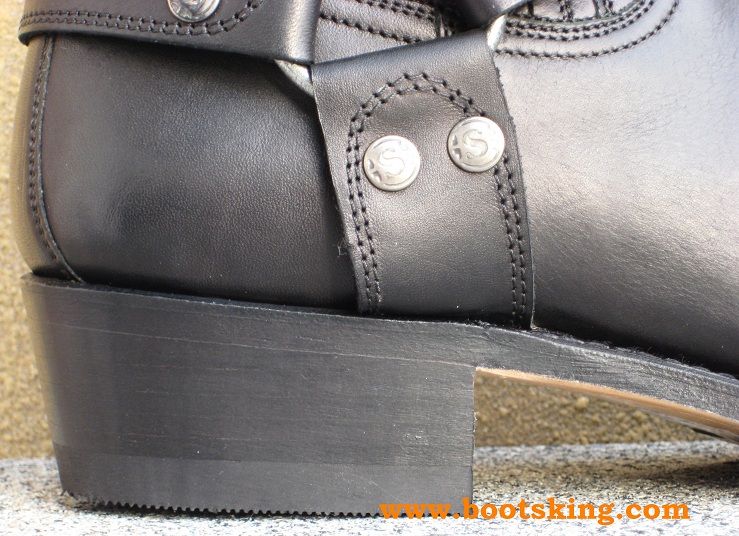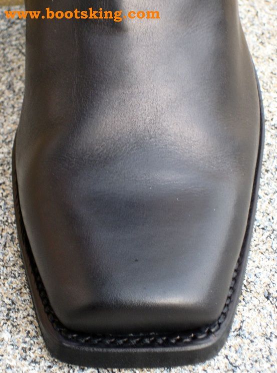 Hochwertig verarbeitete Rahmengenähte (Good Years Welted) Biker Boot aus bestem schwarzem Oberleder und Ledersohle, dieses Model ist ein wenig breiter als die Santa Fe und es ist schon eine Kunststoffsohle unter der Ledersohle angebracht,  in Spanien von Handarbeit hergestellt bei Sendra.