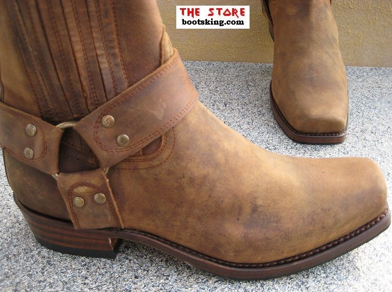 Hochwertig verarbeitete Rahmengenähte (Good Years Welted) Biker Boot aus bestem braunen Nubuck Leder und Ledersohle, dieses Model ist ein wenig breiter als die Santa Fe und es ist schon eine Kunststoffsohle unter der Ledersohle angebracht, in Spanien von Handarbeit hergestellt bei Sendra.