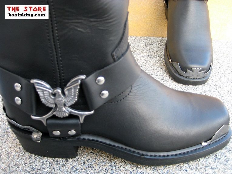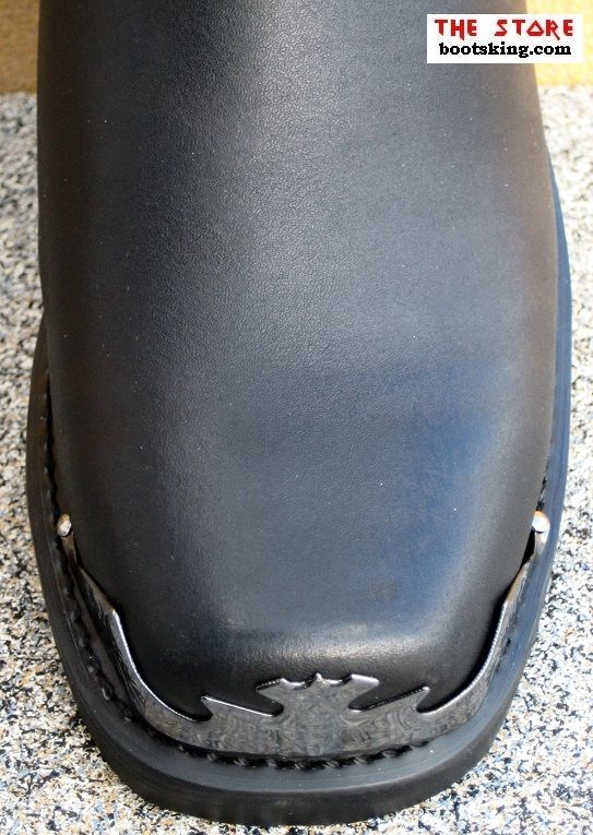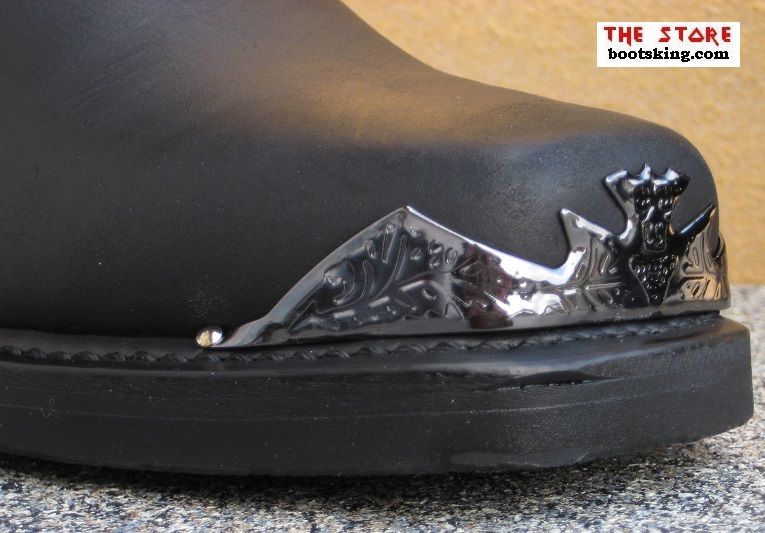 Hochwertig verarbeitete Rahmengenähte (Good Years Welted) Biker Stiefel, mit schönen Metall Verzierungen.