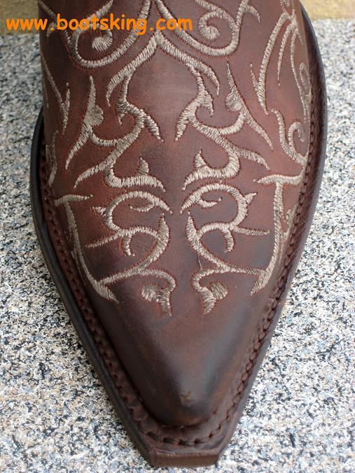 Hochwertig verarbeitete Rahmengenähte (Good Years Welted) Stiefel von Sendra, auf einer Ledersohle augebaut aus weichem braunen Nubuk Leder mit schönen Verzierungen am Fuß.
