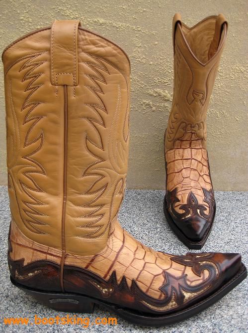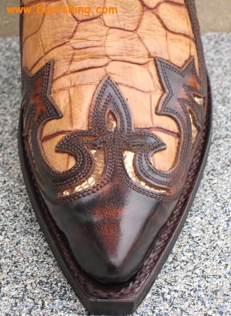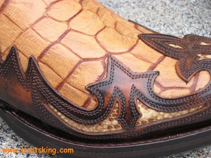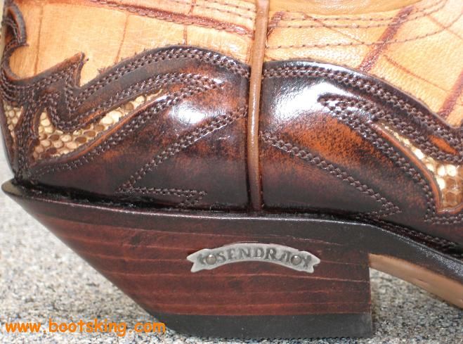 Hochwertig verarbeitete Rahmengenähte (Good Years Welted) Stiefel von Sendra der Fussbereich ist aus geprägtem Rinderleder und die Applikationen sind mit echtem Python Leder unterlegt.